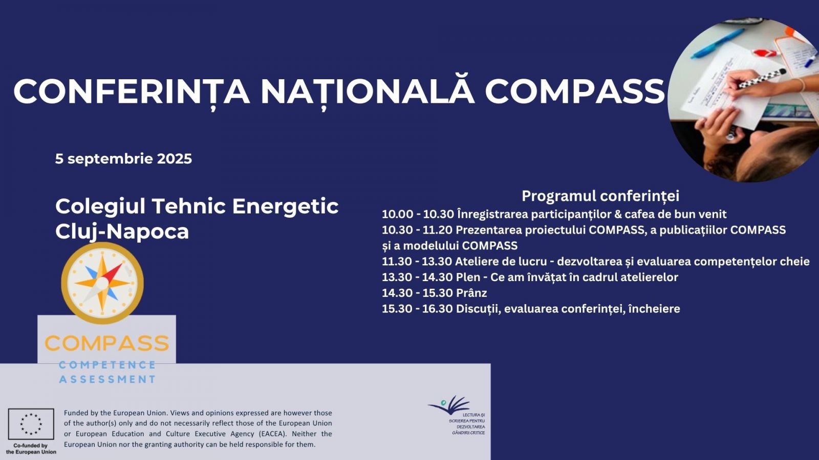 În 5 septembrie 2025, orele 10 - (aprox) 16 va avea loc Conferința Națională COMPASS la Colegiul Tehnic Energetic Cluj-Napoca (str. Pascaly 2-4). Vedeți mai jos programul conferinței.